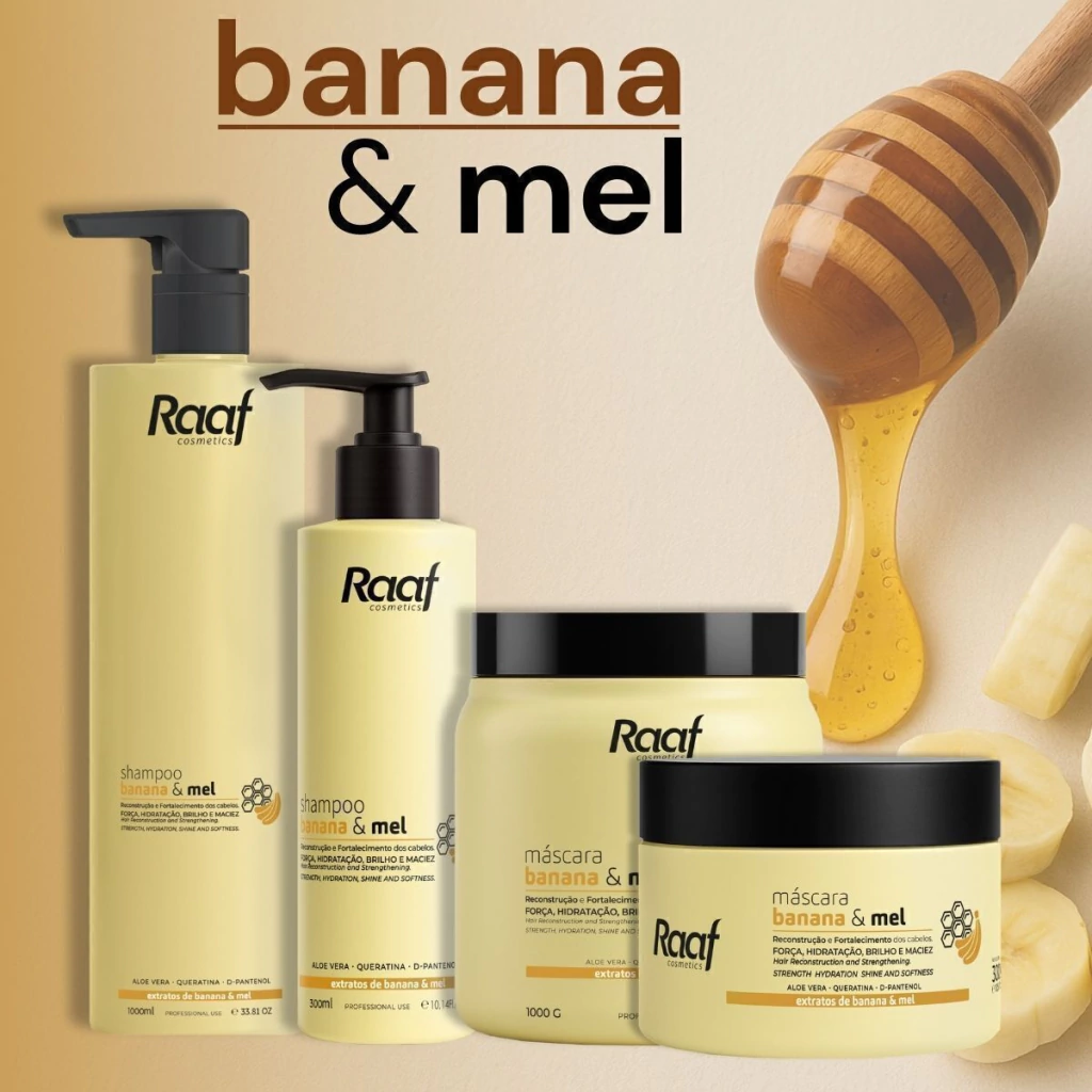 O Shampoo Banana e Mel da Raaf Cosmetics foi desenvolvido para fortalecer os fios desde a raiz, proporcionando uma limpeza eficaz sem agredir a estrutura capilar. Enriquecido com extrato de banana, queratina e D-pantenol, ele nutre, reconstrói e revitaliza os cabelos fragilizados, promovendo mais resistência, brilho e maciez. O mel potencializa a hidratação, enquanto a queratina repara os danos e o D-pantenol confere elasticidade e sedosidade. Ideal para quem busca fios mais saudáveis, fortes e cheios de vida!